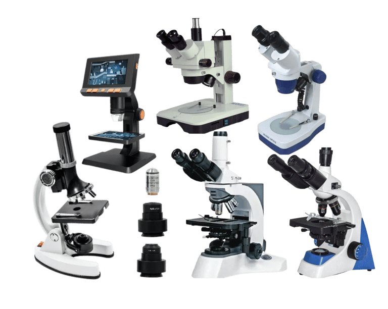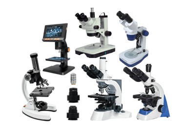 Microscópios Biológicos Binoculares, Microscópios Biológicos Trinoculares, Microscópios Estereoscópios, Acessórios para Microscópios, Câmeras para Microscopia, Dispositivos para Microscópios.