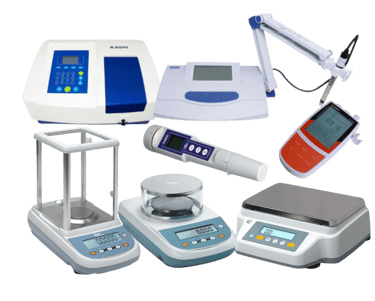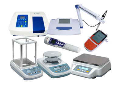 Espectrofotômetro UV-visível, Espectrofotômetro de Chama, Medidor de pH, Condutivímetro, balanças analíticas e semi analíticas, entre outros.