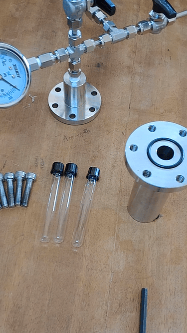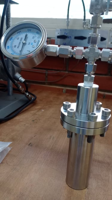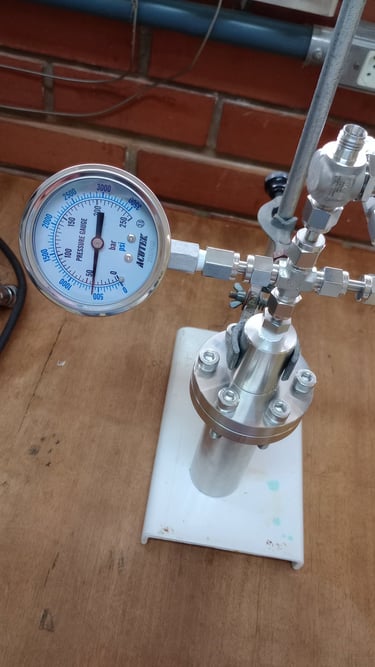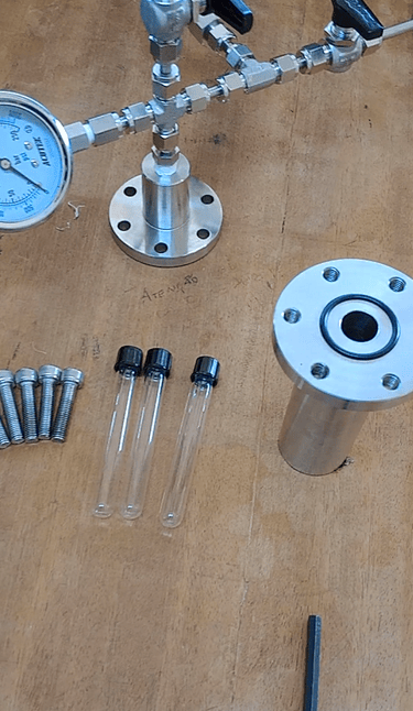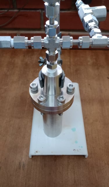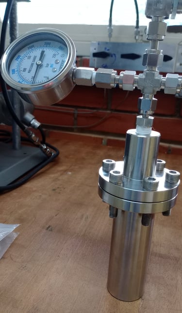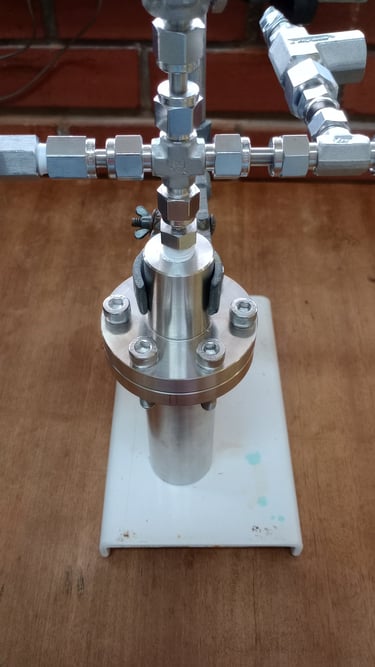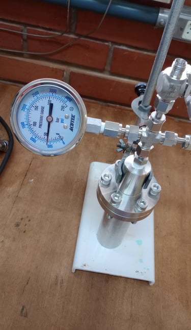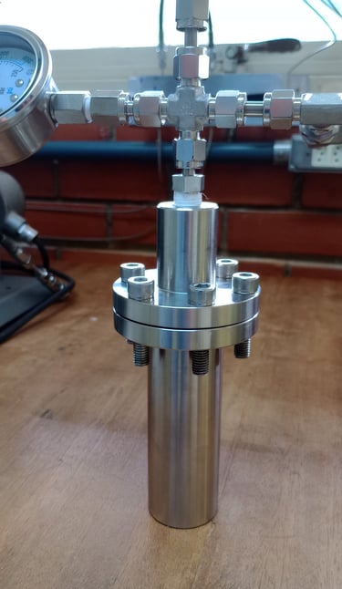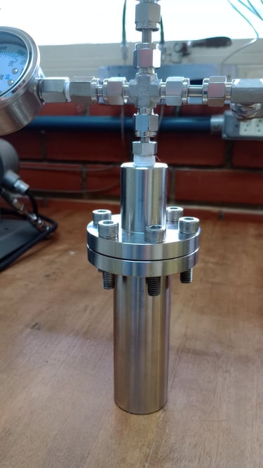 Um reator de alta pressão construído em aço inox 316, com suporte para pressões de até 200 bar e compatível com tubos de ensaio de 13x100mm possibilitando reações a um volume de até 5mL e monitoramento gráfico da queda de pressão. Otimizado para pequenos volumes e totalmente personalizável para sua aplicação.